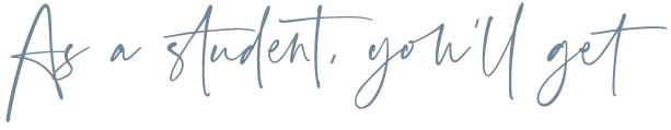 To the course contents and all future upgrades. While this course will be self-paced, you won’t be alone and it will be individualized to YOU.
